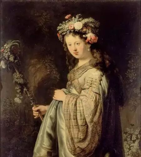 伦勃朗《扮作花神的沙斯姬亚》